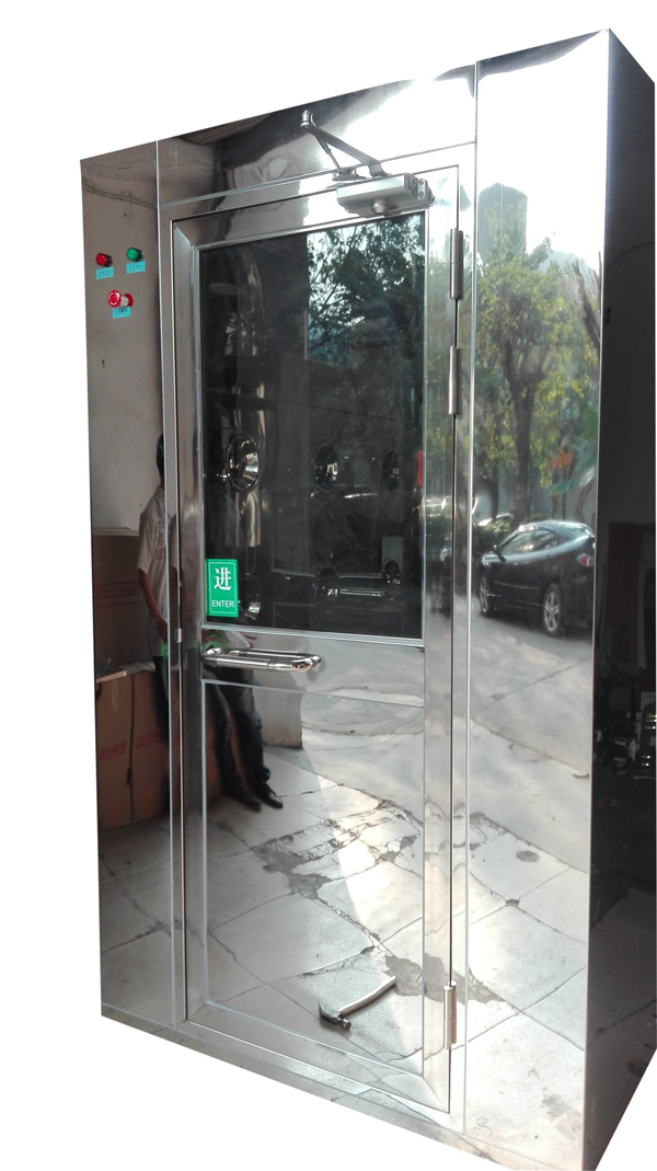 Air shower is equipment of cleanroom and fabricated small Room,used for blowing off ppl’s and belongs’s carry on dust,as Well as act as air valve usage,preventing air into the cleanroom without purification which effectively prevent the cleanroom be polluted. The air by the action of fan though the primary filter access Air to plenum chamber.after though HEPA filter cleaning, by the highly speed blowing though air shower nozzle which,direction can be adjusted .the blowing off dust was,recycling to the pre filter to achieve ppl and goods and air shower’s indoor self-recycling clean systems.